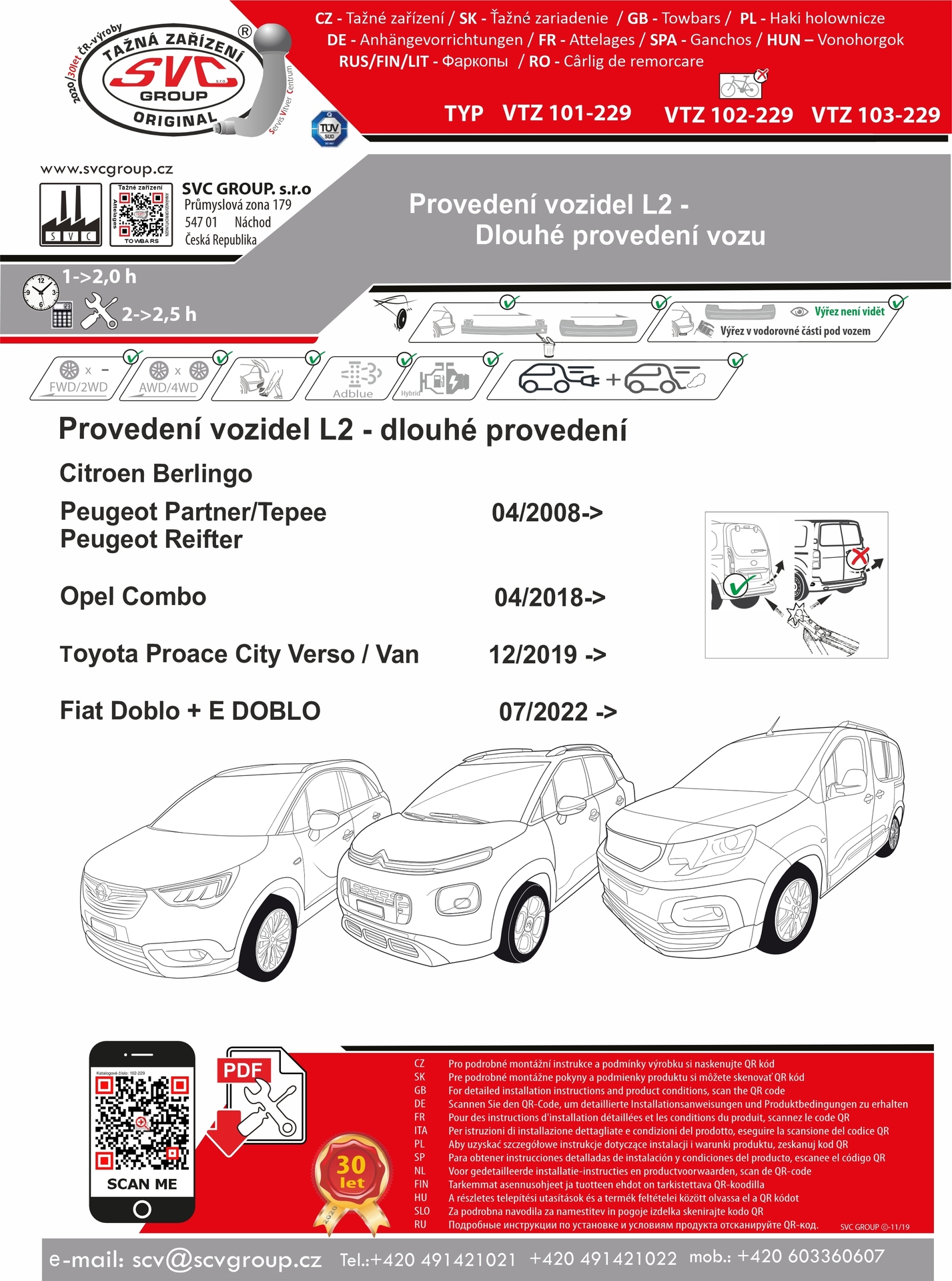 K tažnému zařízení je dodáván zdarma montážního návod, typový list pro zapsání do technického průkazu a na webu výrobce jsou rozšířené informace pro podporu montáže a použití výrobku.