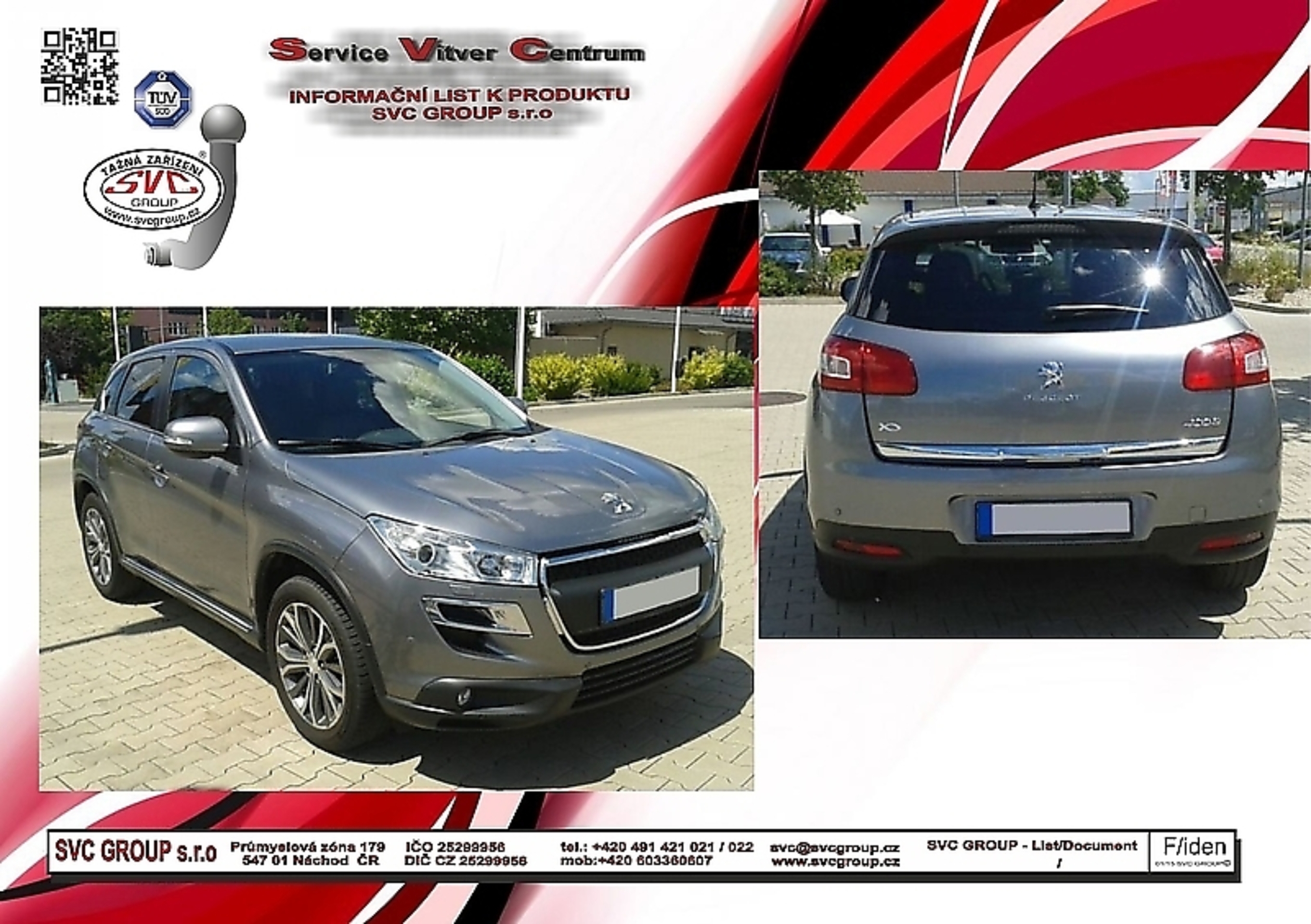 Levné tažné pro Peugeot 4008 01/ 2012 -> Zesílená konstrukce tažného zařízení pro výší svislé zatížení, vhodné například pro nosiče kol možné použít i na Peugeot 4008 2021-/ Citroen C4 Aircross 2012- / Mitsubishi ASX 2010 -> včetně faceliftu v letech 2017 -> 2019->, Mitsubishi Eclipse Cross 10/ 2017 -> Včetně facelift v.roce 2012->