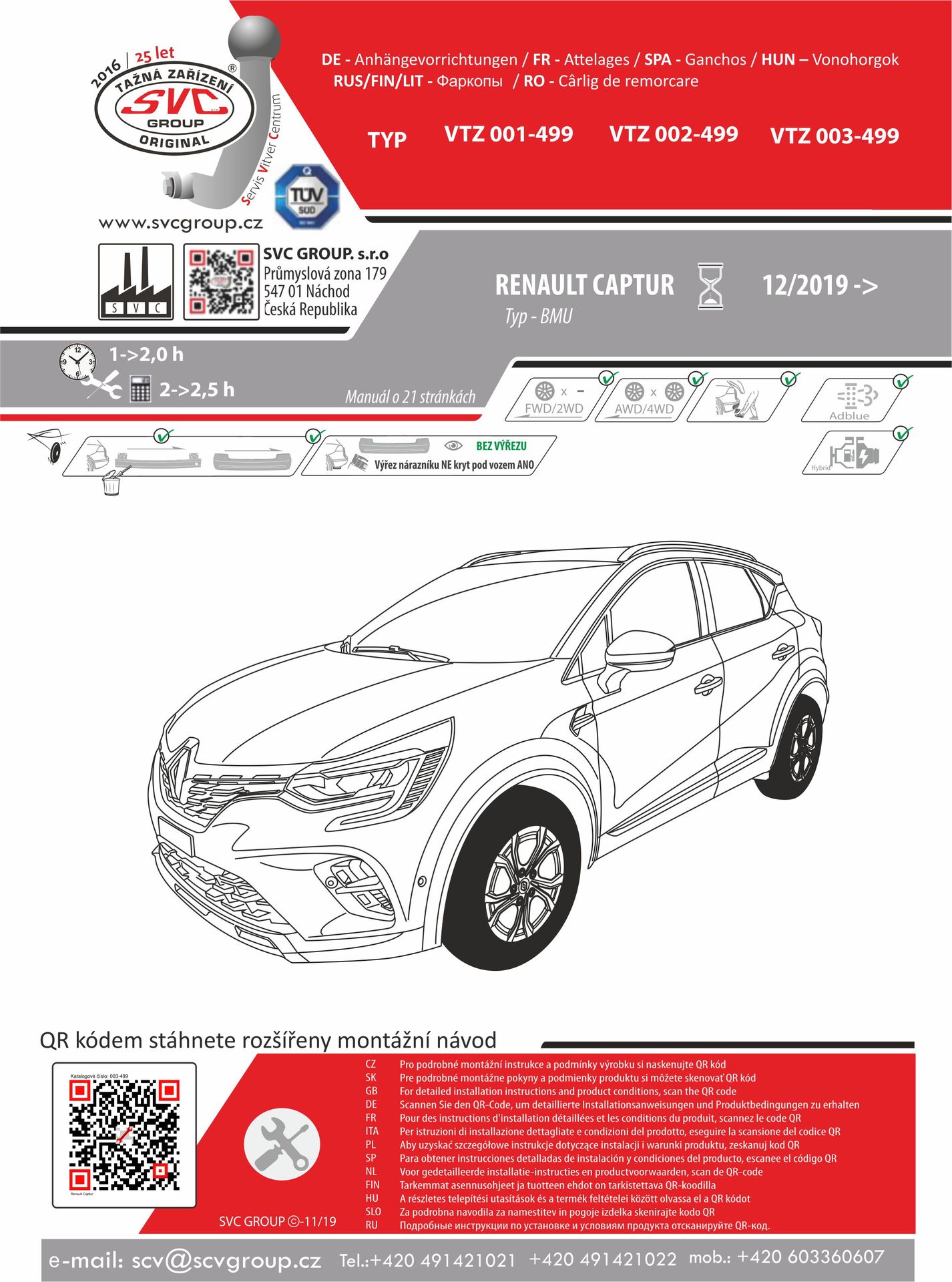 Levné tažné pro Renault Captur 12/2019-> Včetně nožního otevírání zadních dveří a Včetně nožního otevírání zadních dveří a AdBlue / Plug-in Hybrid / Hybrid a RS LINE