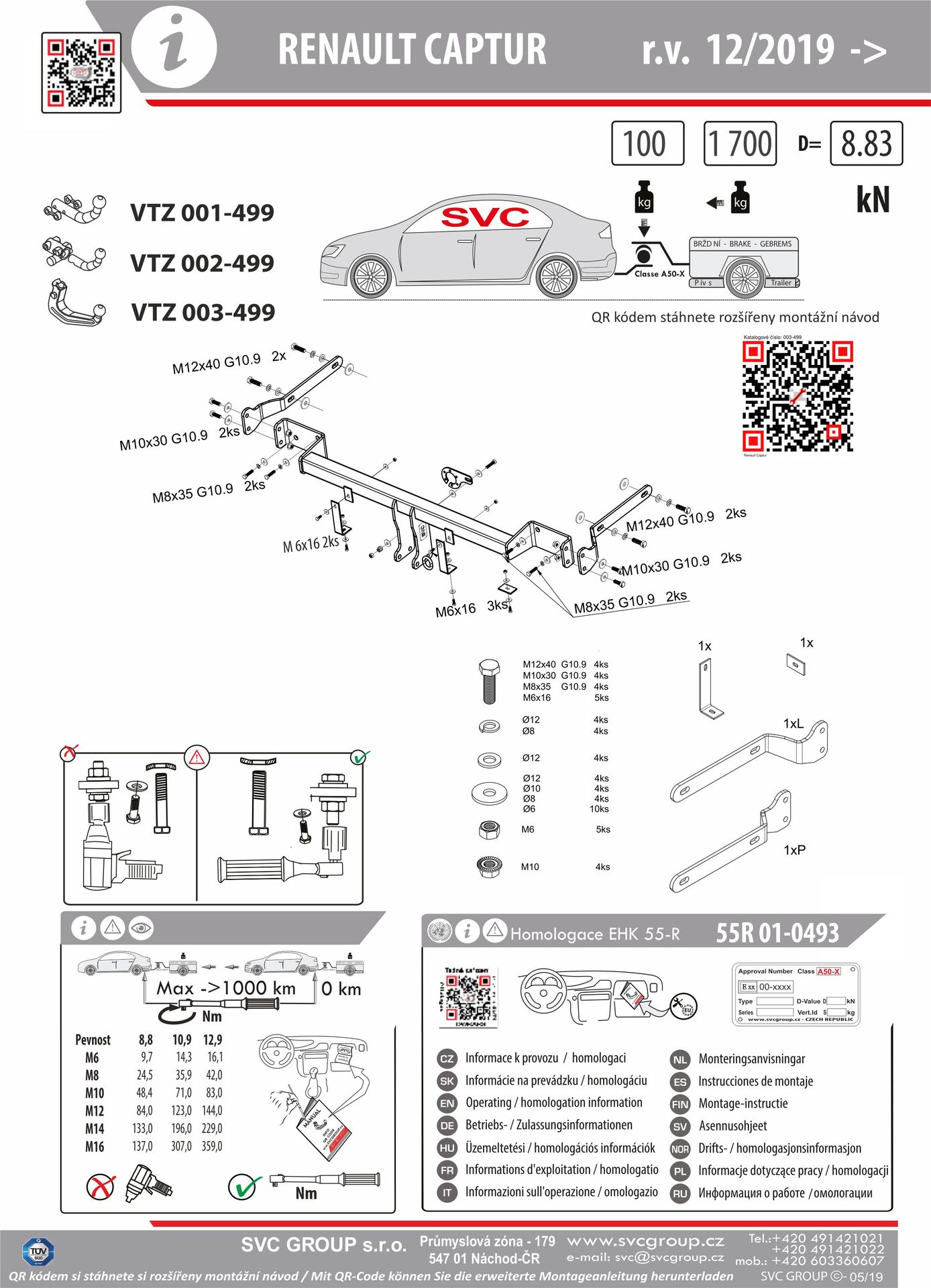 K tažnému zařízení je dodáván zdarma montážního návod, typový list pro zapsání do technického průkazu a na webu výrobce jsou rozšířené informace pro podporu montáže a použití výrobku.