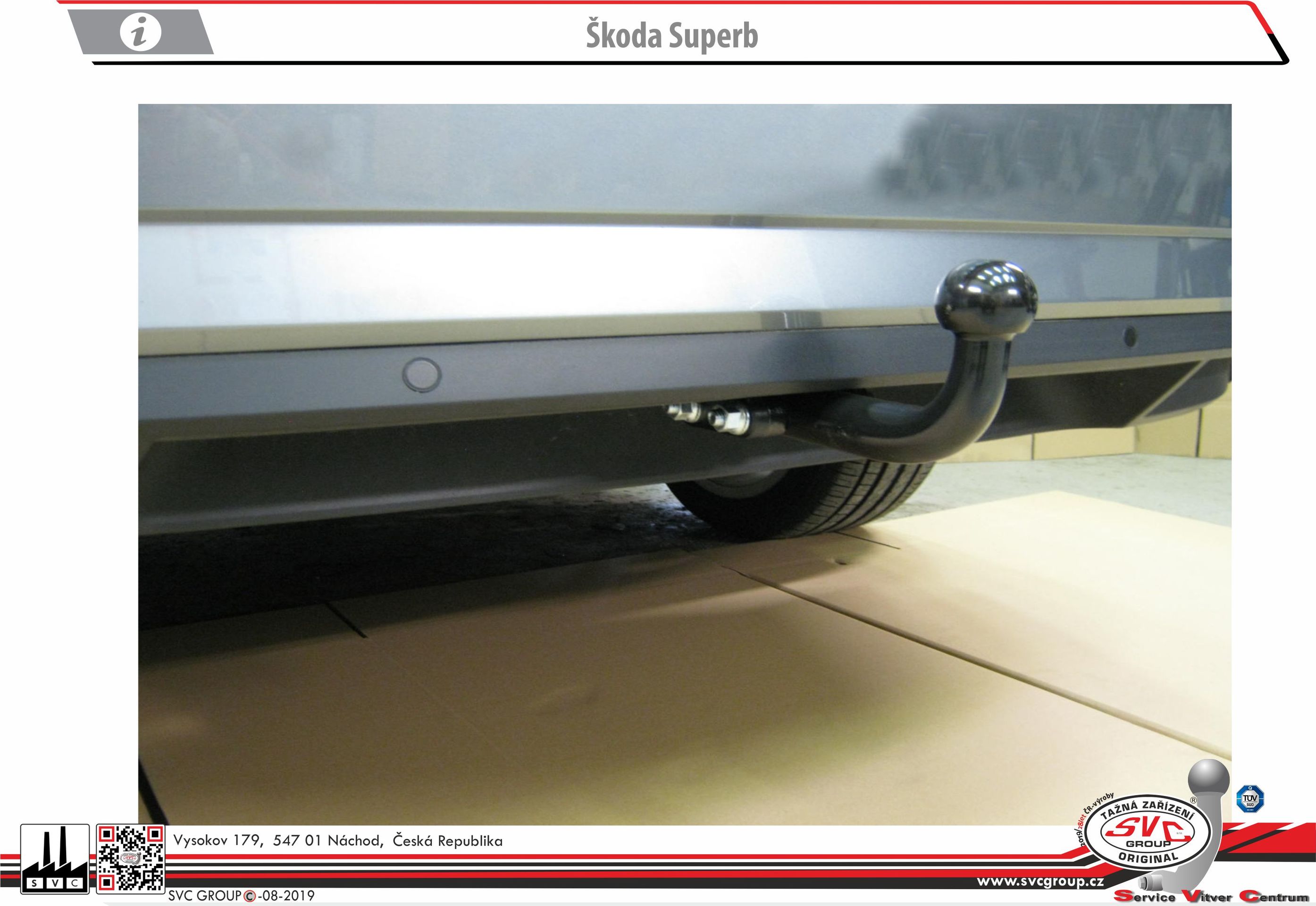 Levné tažná zařízení pevné - demontovatelné na dva šrouby -pro Škoda Superb vč. 4x4 + Sport Line 05/ 2015 -> včetně faceliftu v roce 2024->  Kulový čep je vyveden v černé spodní části nárazníku a nesnižuje nájezdový úhel vozu, je v originálním otvoru pro tažné zařízení od výrobce vozu. Výřez v nárazníku je ve vodorovné části a není běžně vidět, dle typu a výbavy je buď otvor již připravený od výrobce z výroby, nebo se zhotoví dle předznačení v nárazníku od výrobce vozu.