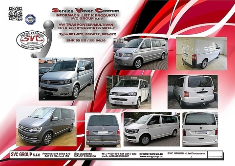 Levné tažné pro Volkswagen Transporter T5 / T6 a T6.1 včetně 4-Motion+park senzorů+Californi+Shuttle od roku 08/ 2015->