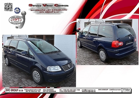 Levné tažné pro Volkswagen Sharan včetně 4-Motion (pohon kol 4x4) 05/2000->08/2010 Né pro vozidla s originálními couvacími senzory