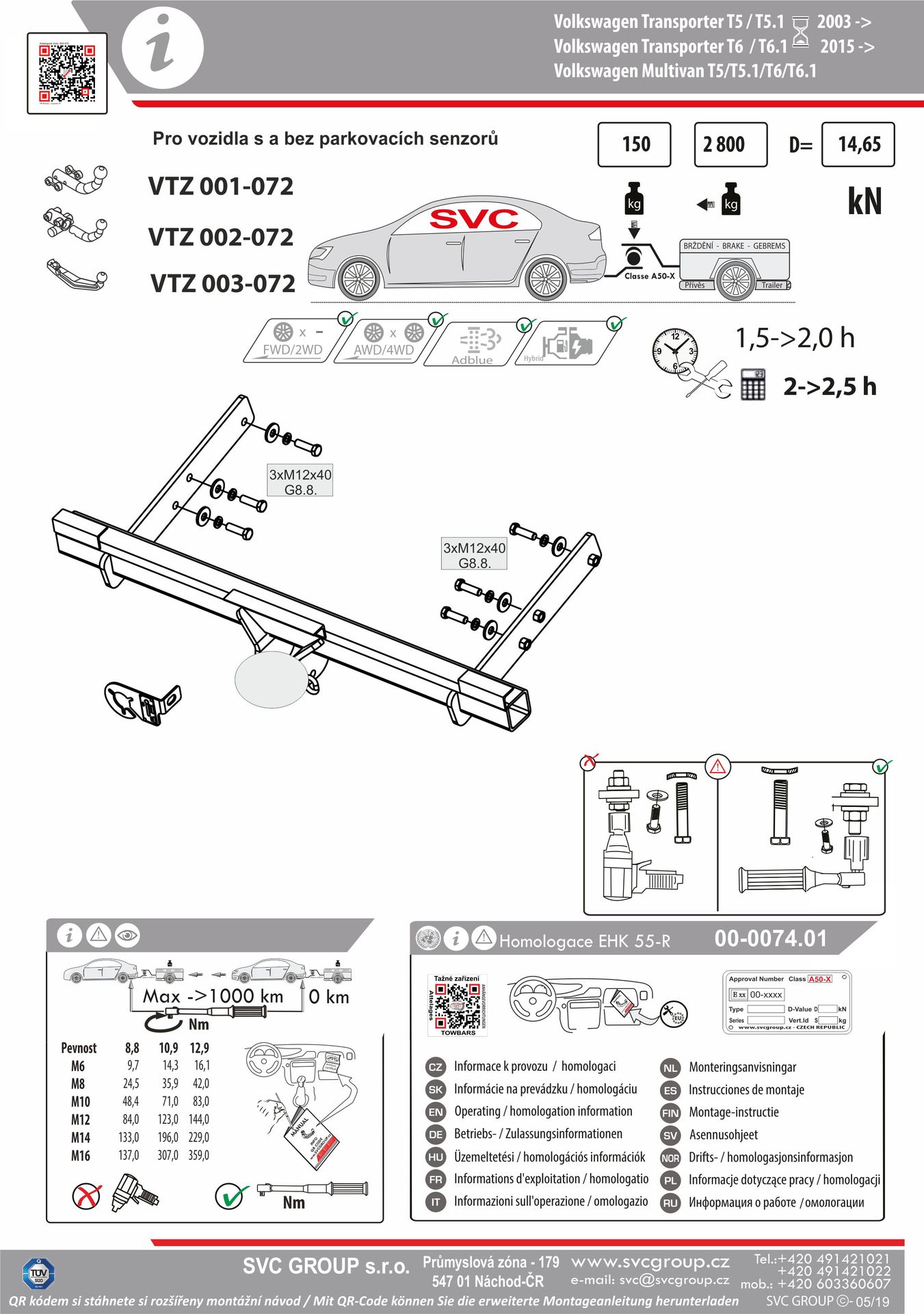 K tažnému zařízení je dodáván zdarma montážního návod, typový list pro zapsání do technického průkazu a na webu výrobce jsou rozšířené informace pro podporu montáže a použití výrobku.
