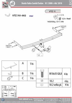 K tažnému zařízení je dodáván zdarma montážního návod, typový list pro zapsání do technického průkazu a na webu výrobce jsou rozšířené informace pro podporu montáže a použití výrobku.