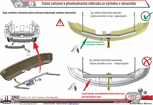 SVC – Výztuha zadního nárazníku se musí vždy při montáži tažného zařízení a j jedno kterého výrobce demontovat z vozu. Je tvarovaná tak aby ochránila posádku vozu, toto vyvíjí výrobce vozu a testuje na bariérových zkouškách, a podobně, všechna snaha je vedená k ochraně posádky při nárazu zezadu, tyto nehody jsou nejvíce nebezpečné a ani je neovlivníte, protože je nečekáte většinou nedobrždění  a podobně.