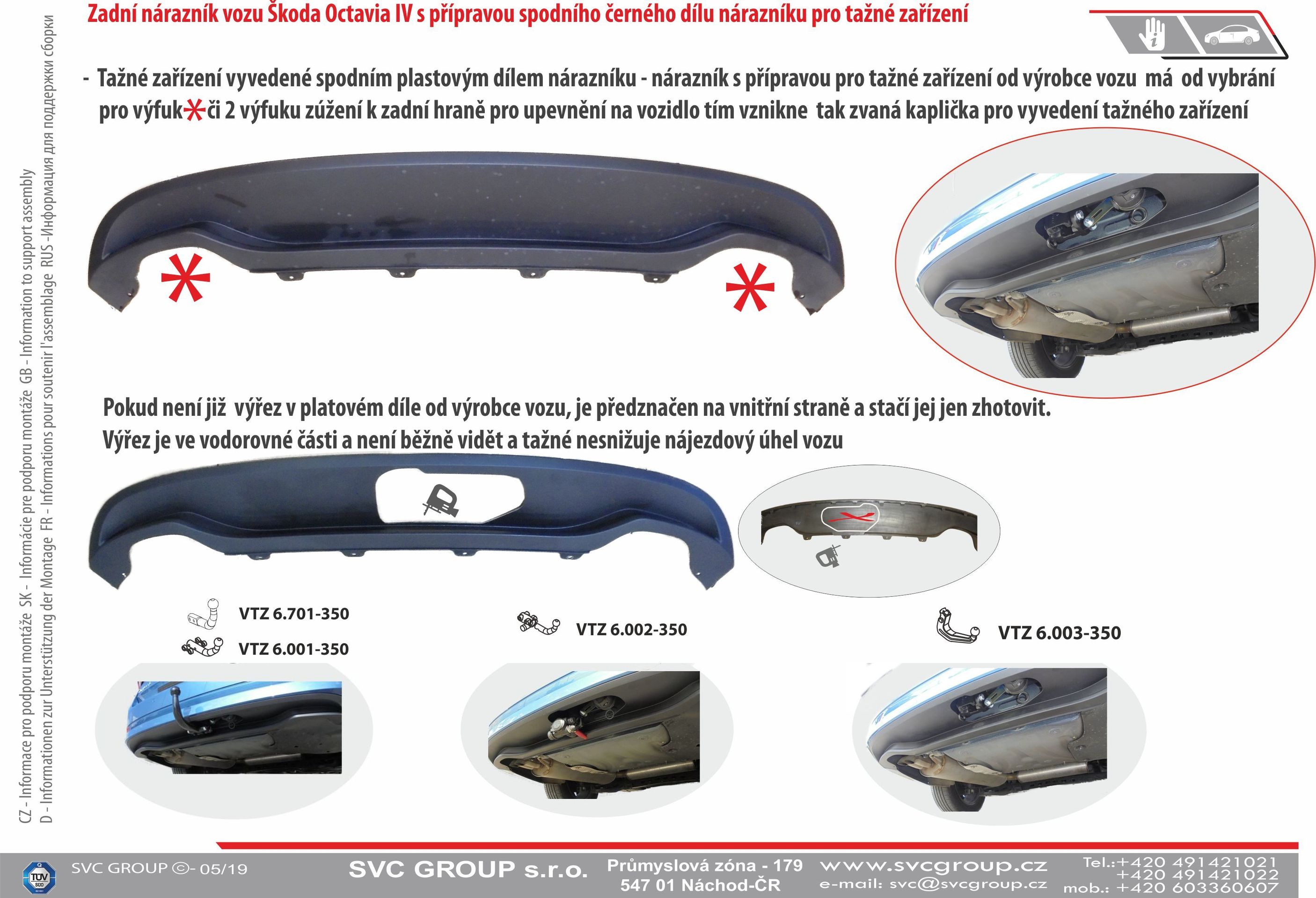 Levné Originální tažné zařízení SVC pro Škoda Octavia IV.  Jen pro nárazník vozu s příplatkovou přípravou spodního dílu nárazníku pro tažné zařízení.  Včetně typů 4x4, RS iV. Dále pak včetně typů CNG a Hybrid pohonem pokud je povoleno od výrobce vozu v Technickém průkazu vozu. Dodání tažného zařízení včetně držáku anténního zesilovače (pokud je vozidlo tím to zesilovačem vybavené, zjistíte až při montáži, u nás tedy nemusíte pokud je tímto vozidlo vybavené tento držák shánět nebo přiobjednávat je součástí dodávky.