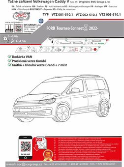 Tažné pro Ford Tourneo Connect 2022 krátké L1a dlouhé provedení L2 včetně 7 místné verze r.v. 10/ 2020 -> Pro LPG, EHEV, e-Hybrid. Tažné zařízení je také určené pro všechny typy VW Caddy, která mají povolené LPG, EHEV, e-Hybrid a elketro vozidlo s povolením včetně technickém průkazu od výrobce vozidel.  jako alternativní pohon.