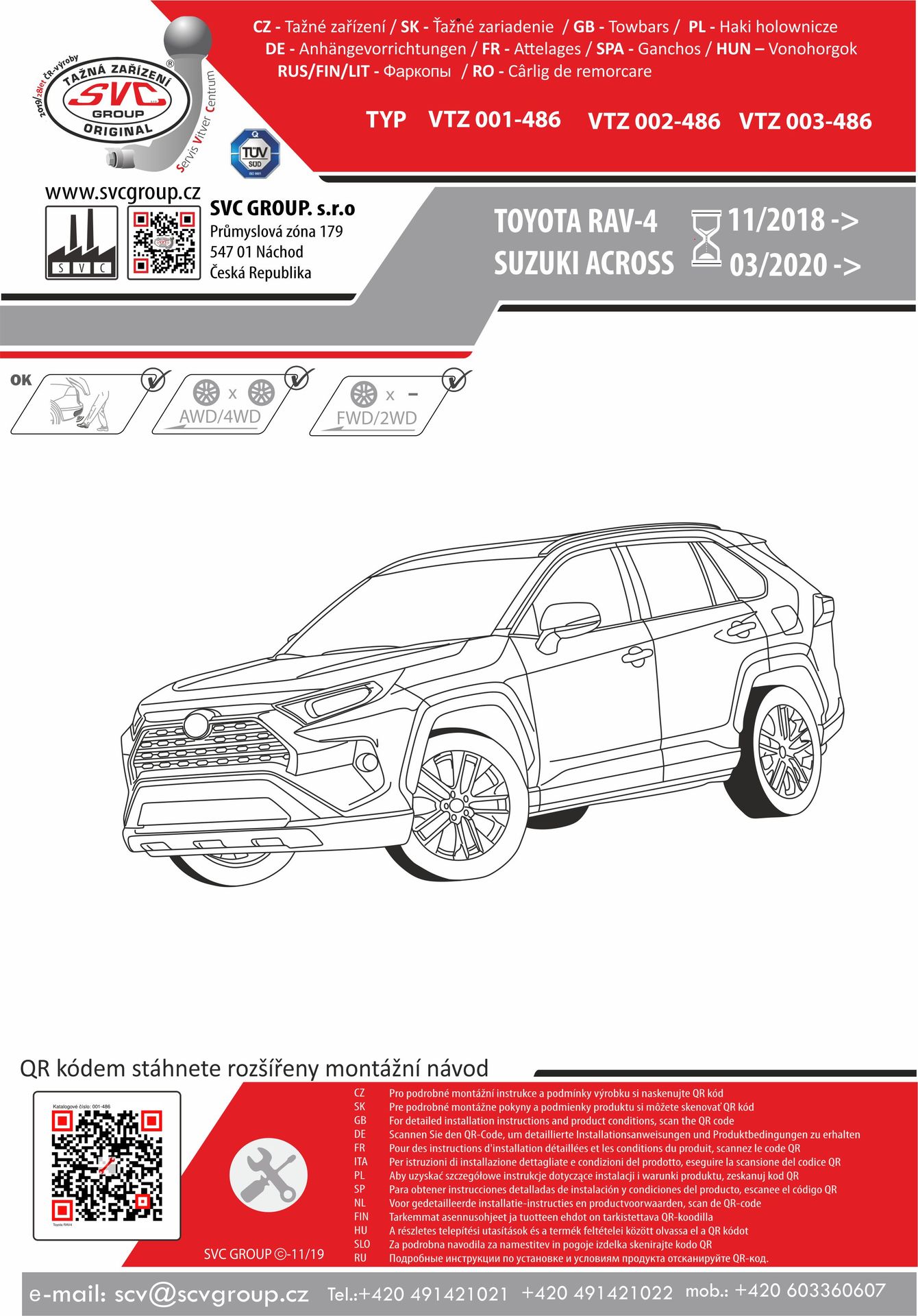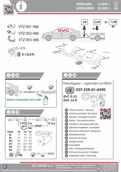 K tažnému zařízení je dodáván zdarma montážního návod, typový list pro zapsání do technického průkazu a na webu výrobce jsou rozšířené informace pro podporu montáže a použití výrobku.