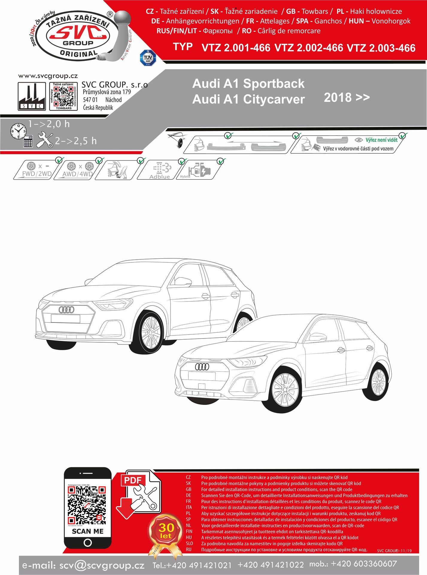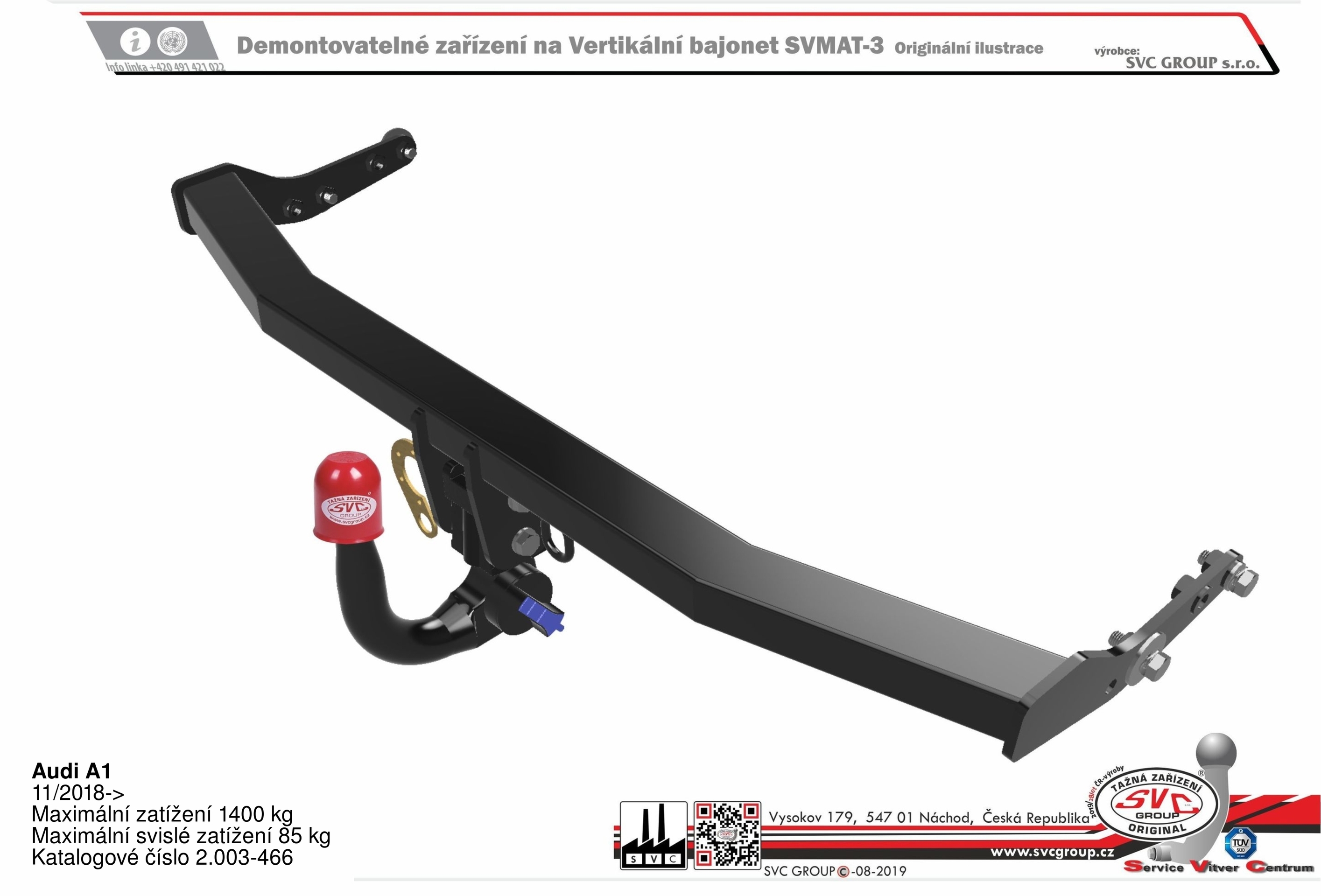 Tažný zařízení pro AUDI Citycarver + Sportback originální SVC GROUP, včetně typu vozuS-Line . Tažné zařízení plnohodnotně nahrazuje demontovanou výztuhu vozu kterou právě tažné zařízení nahrazuje. ( to rovný nosník jiných prodejců nezaručuje). Tažné zařízení nesnižuje nájezdový úhel. (nenarazíte s ním tedy na obrubník) vyvedený z nárazníku dle požadavku výrobce vozu. Včetně zaklápěcí auto zásuvky pod nárazník vozu Po demontáži kulového čepu není na voze vidět že by bylo vybavené tažným zařízením. Tažné zařízení lze použít i na verzi 4-Motion (4x4). Není k použití pro některé typy vozidel s pohonem na CNG, pokud to nepovoluje výrobce vozu