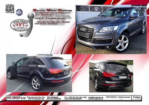 Tažný zařízení pro Audi Q7 S-line a SQ7 03/2006->08/2015 Včetně 7 místné verze vozu