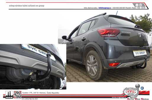 Originální tažné zařízení SVC Dacia Sandero/Stepway 01/2021-> prémiový výrobek, kde po demontáži čepu není na voze vidět, že by bylo vybaveno tažným zařízením. Včetně pohonu vozu na LPG a s AdBlue.