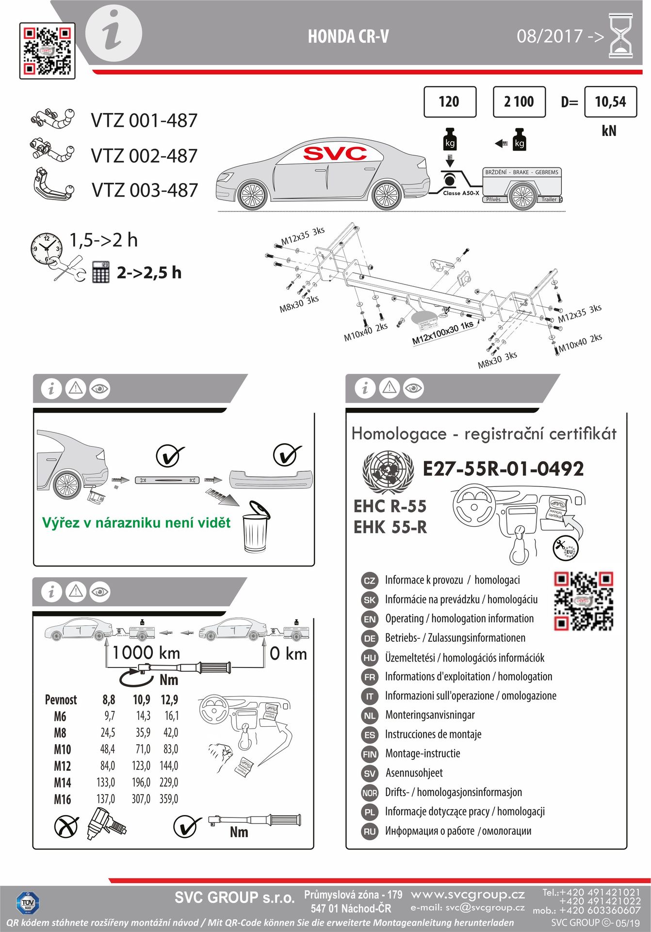 K tažné zařízení je dodáván zdarma montážního návod, typový list pro zapsání do technického průkazu a na webu výrobce jsou rozšířené montážní informace pro podporu montáže, která je jednoduchá a dle požadavku výrobce.