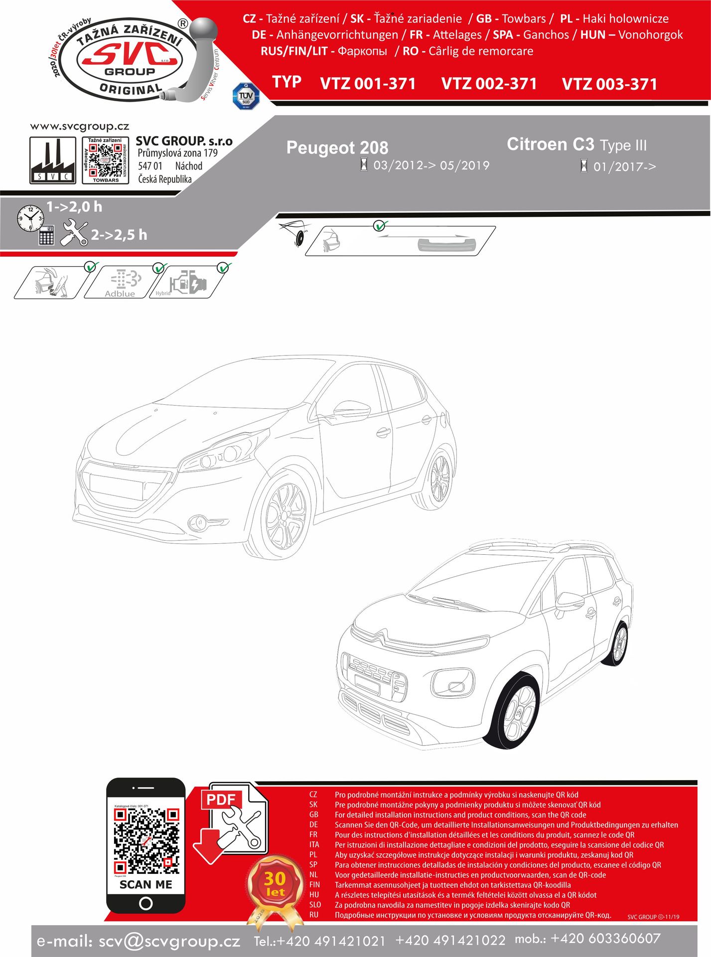 Tažný zařízení pro Peugeot 208   01/2017-> Prémiový zesílený výrobek vhodný i pro nosiče kol. Po demontáži kulového čepu a zaklopení auto zásuvky není na voze vidět že má tažné zařízení. Originální výrobek SVC Group . Český výrobce s více jak 35 letou tradicí, garantující 100% servis na dodávané výrobky - vše máme skladem a co nemáme to si vyrobíme ..