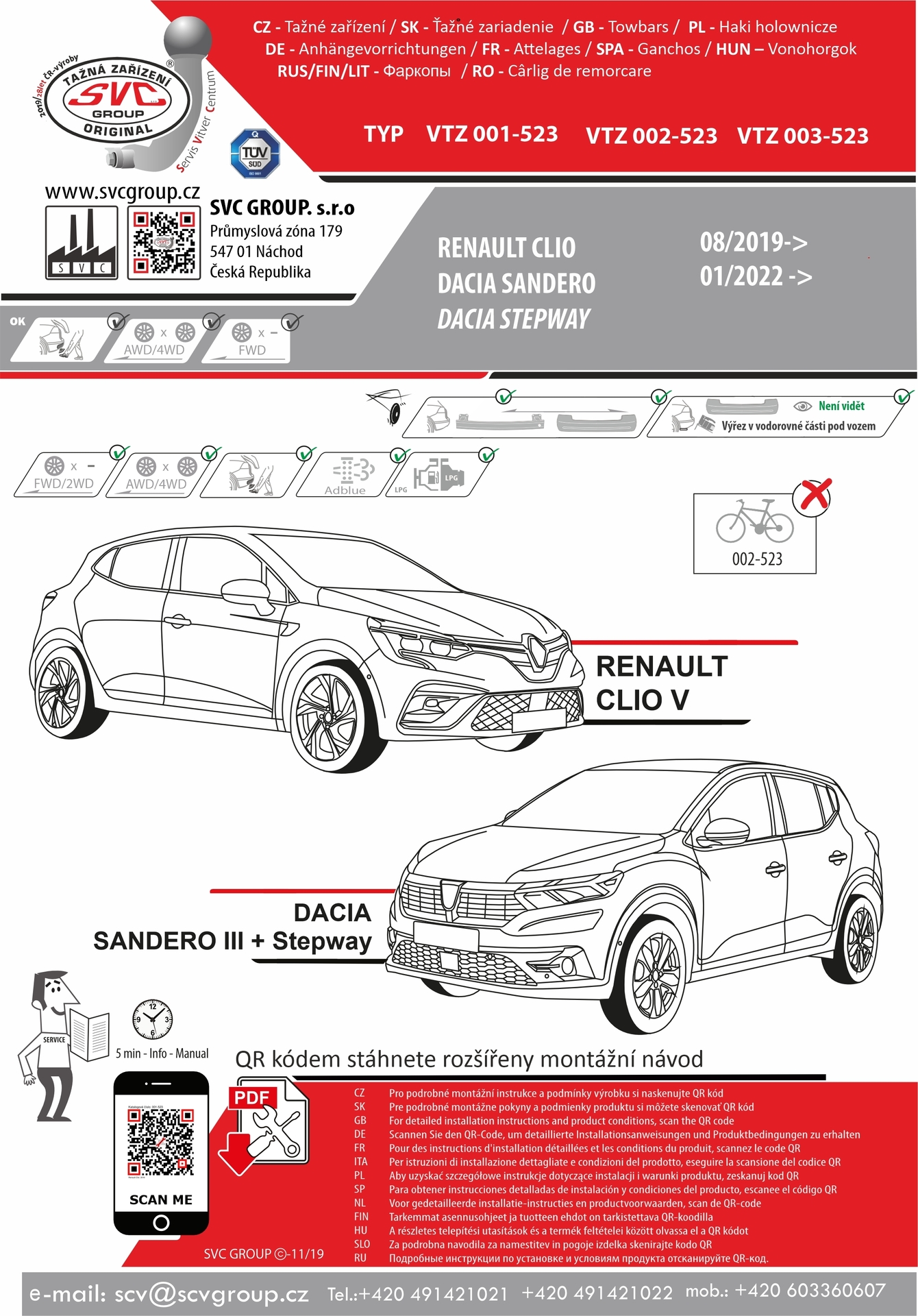 K tažné zařízení je dodáván zdarma montážního návod, typový list pro zapsání do technického průkazu a na webu výrobce jsou rozšířené montážní informace pro podporu montáže, která je jednoduchá a dle požadavku výrobce.