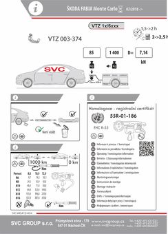 K tažné zařízení je dodáván zdarma montážního návod, typový list pro zapsání do technického průkazu a na webu výrobce jsou rozšířené montážní informace pro podporu montáže, která je jednoduchá a dle požadavku výrobce.