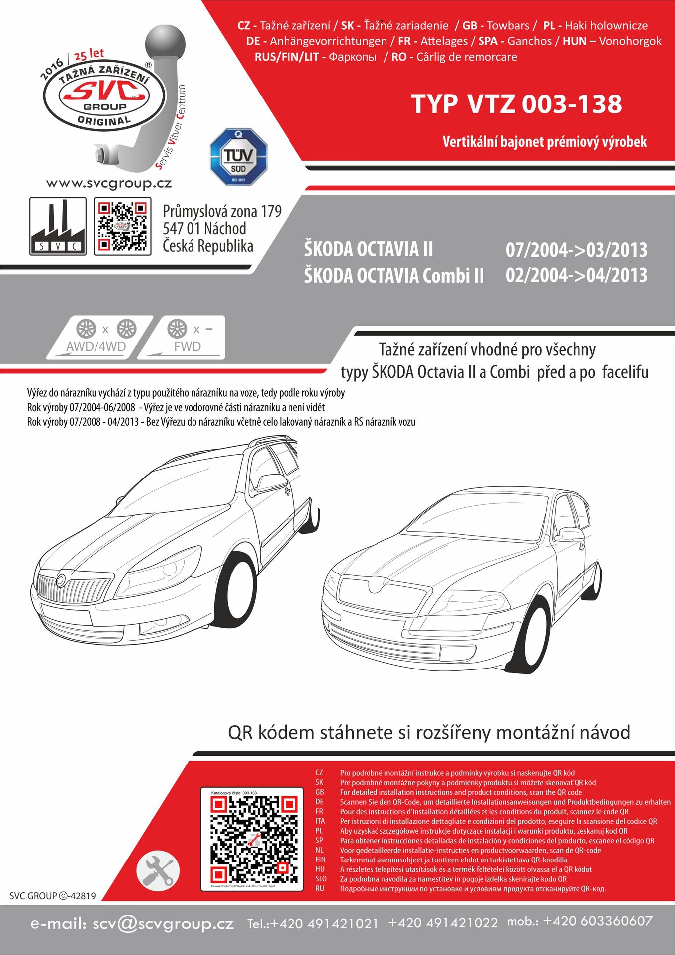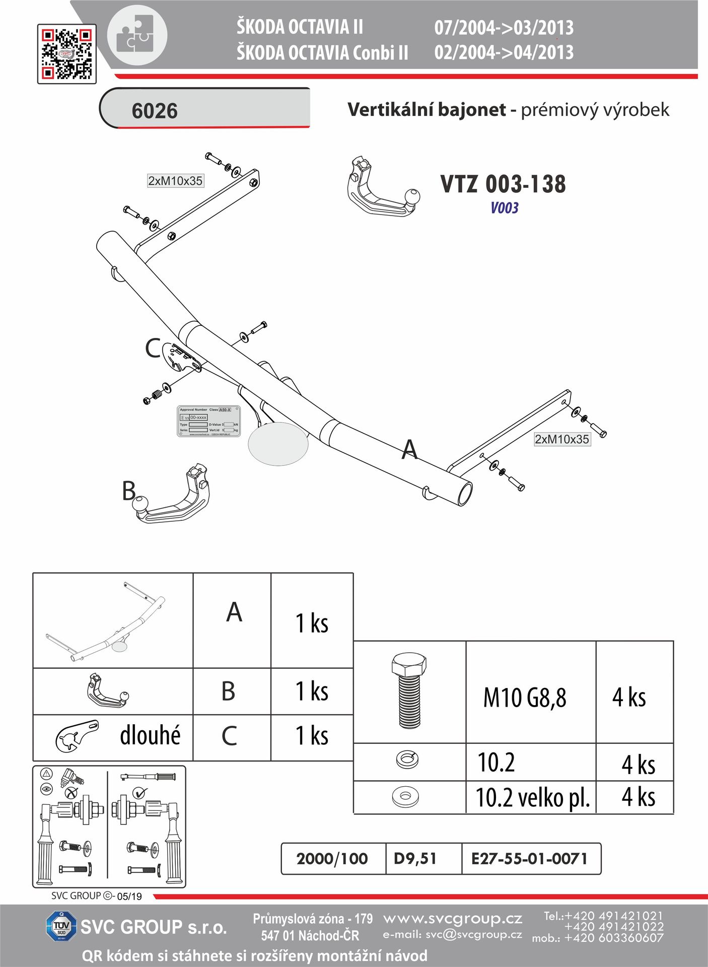 Prémiové Originální SVC tažné zařízení pro Škoda Octavia Včetně 4x4 a RS a Facelift 2004 - 03/ 2013 Tažné zařízení plnohodnotně nahrazuje výztuhu nárazníku, která se vždy musí demontovat z vozu při montáži tažného zařízení. tento výrobek je vyrobený dle specifikace výrobce vozidel na náhradu zadní výztuhy vozu. Není zde zaměření na nejnižší cenu výrobku jako u některých dovozových výrobků Jedná se o vaší bezpečnost při případném nárazu zezadu do vašeho vozu.