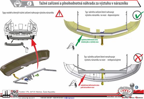 SVC – Výztuha zadního nárazníku se musí vždy při montáži tažného zařízení a j jedno kterého výrobce demontovat z vozu. Je tvarovaná tak aby ochránila posádku vozu, toto vyvíjí výrobce vozu a testuje na bariérových zkouškách, a podobně, všechna snaha je vedená k ochraně posádky při nárazu ze zadu, tyto nehody jsou nejvíce nebezpečné a ani je neovlivníte, protože je nečekáte většinou nedobrždění a podobně.