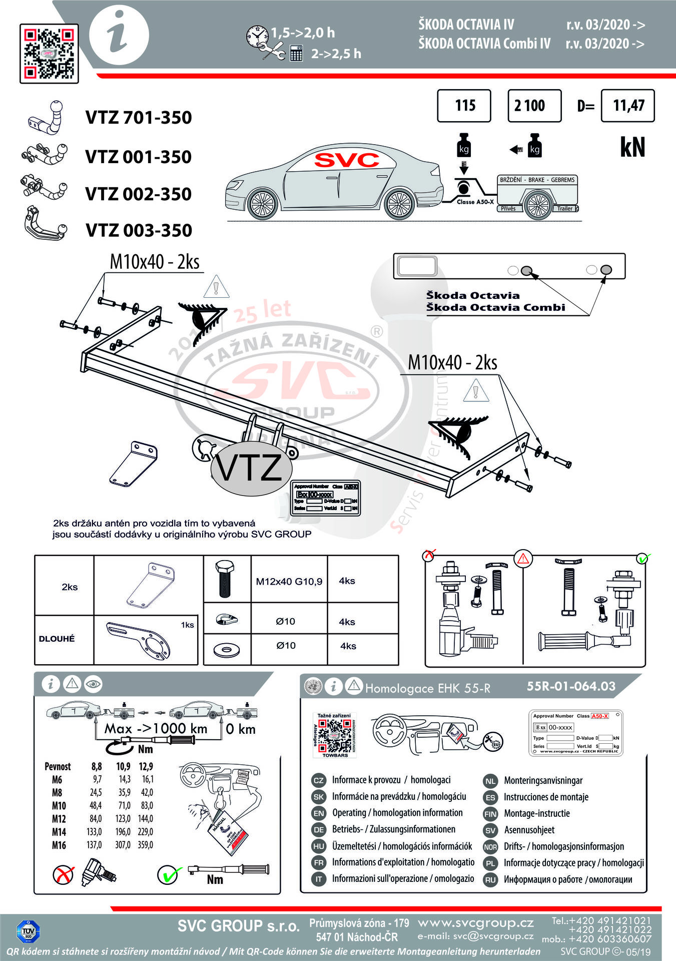 K tažné zařízení je dodáván zdarma montážního návod, typový list pro zapsání do technického průkazu a na webu výrobce jsou rozšířené montážní informace pro podporu montáže, která je jednoduchá a dle požadavku výrobce.