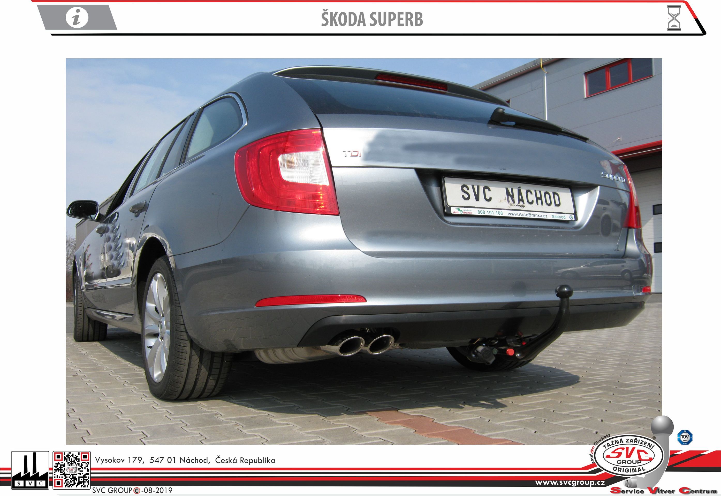 Tažný zařízení pro Škoda Superb a Superb Combi včetně Sport Line + LK a pohonu předních i všech kol 2008->2015 Tažné zařízení plnohodnotně nahrazuje výztuhu nárazníku, která se vždy musí demontovat z vozu při montáži tažného zařízení. Pozor na základě tvaru nárazníku Vám rovný nosník tažného zařízení výztuhu nárazníku nenahradí, jedná se o vaší bezpečnost při případném nárazu zezadu.