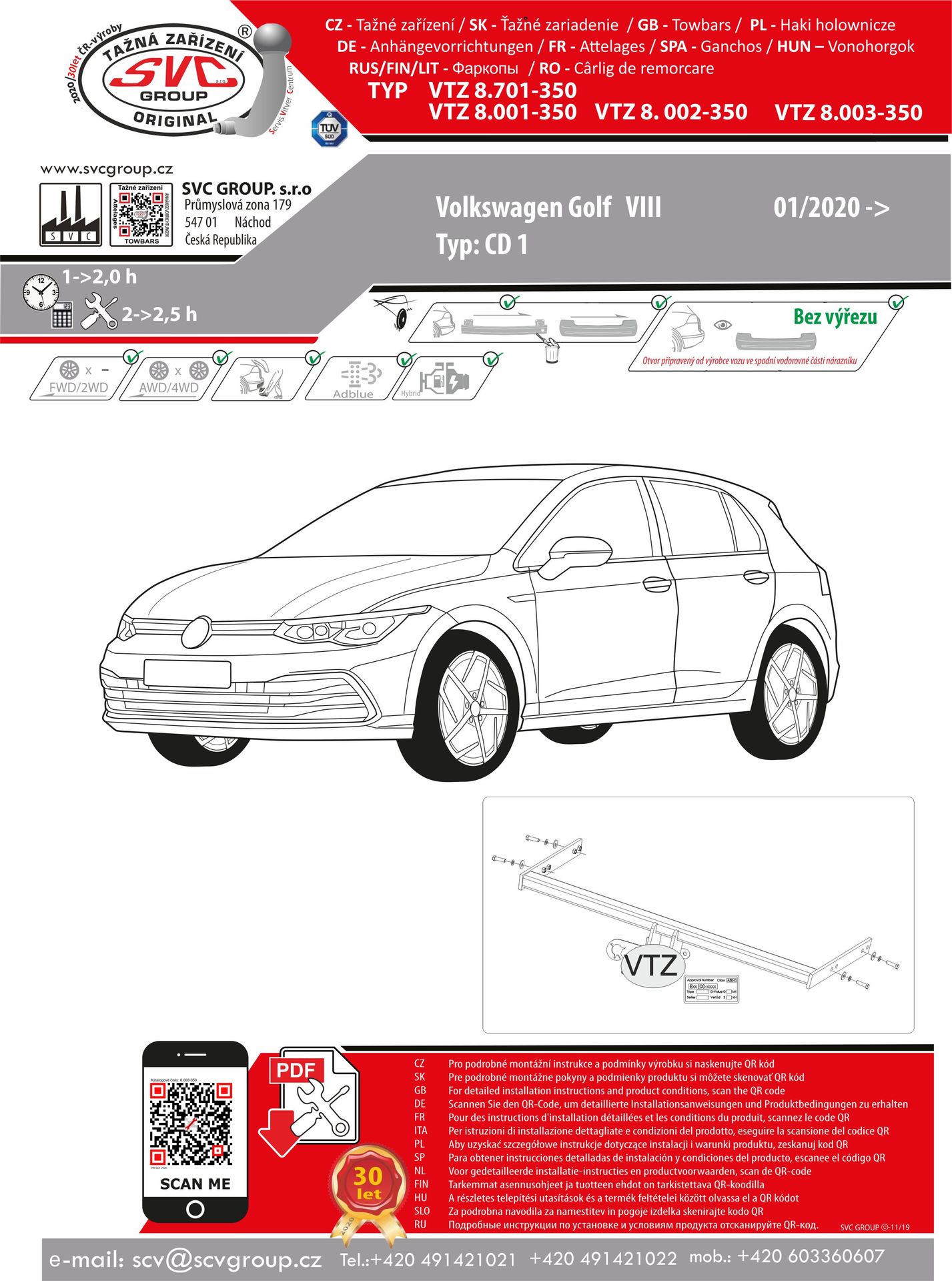 Levné tažné zařízení SVC pro Volkswagen VIII. Včetně 4x4 + RS a AdeBlue Life / Style / R-Line a mnoha dalších včetně typu. Pokud je vozidlo vybavené anténním zesilovačem je držák pro toto zařízení součástí dodávky a tak nemusíte nic rozlišovat.
