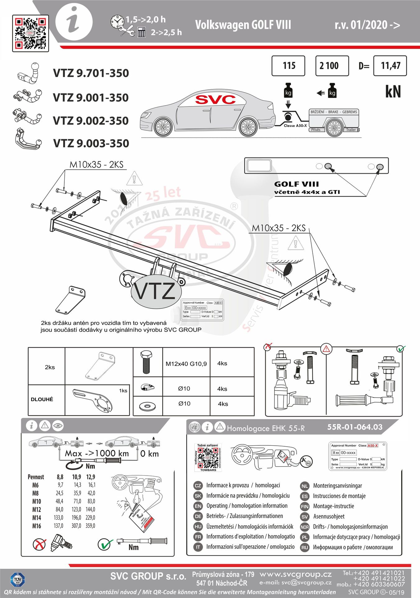 K tažné zařízení je dodáván zdarma montážního návod, typový list pro zapsání do technického průkazu a na webu výrobce jsou rozšířené montážní informace pro podporu montáže, která je jednoduchá a dle požadavku výrobce.