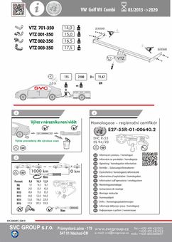 K tažné zařízení je dodáván zdarma montážního návod, typový list pro zapsání do technického průkazu a na webu výrobce jsou rozšířené montážní informace pro podporu montáže, která je jednoduchá a dle požadavku výrobce.