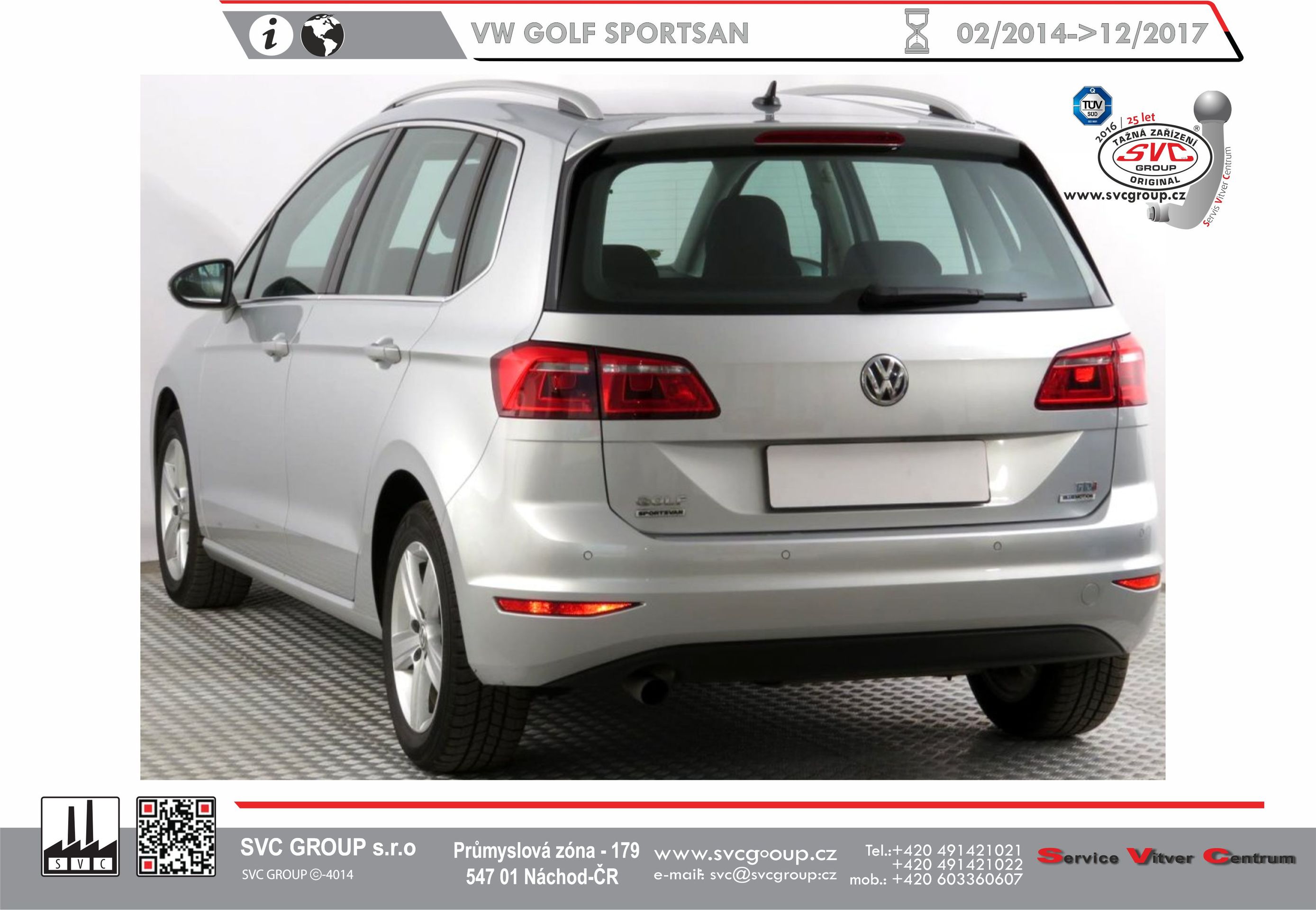 Tažný zařízení pro Volkswagen Golf Sportsvan včetně 4-Motion 04/ 2014 ->12/ 2017 Vhodné i pro CNG s povolením od výrobce vozu