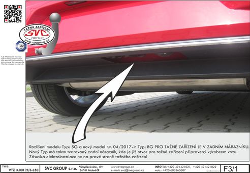 Tažné zařízení je pro všechny modifikace vozu VW Golf VII Combi shodná a to i pro verze s předním a pohonem všech kol 4 Motion