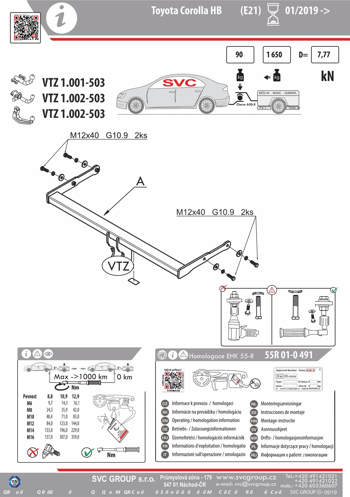 K tažné zařízení je dodáván zdarma montážního návod, typový list pro zapsání do technického průkazu a na webu výrobce jsou rozšířené montážní informace pro podporu montáže, která je jednoduchá a dle požadavku výrobce.