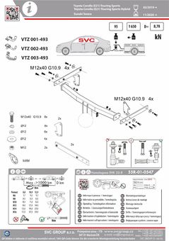 K tažnému zařízení je dodáván zdarma montážního návod, typový list pro zapsání do technického průkazu a na webu výrobce jsou rozšířené informace pro podporu montáže a použití výrobku.