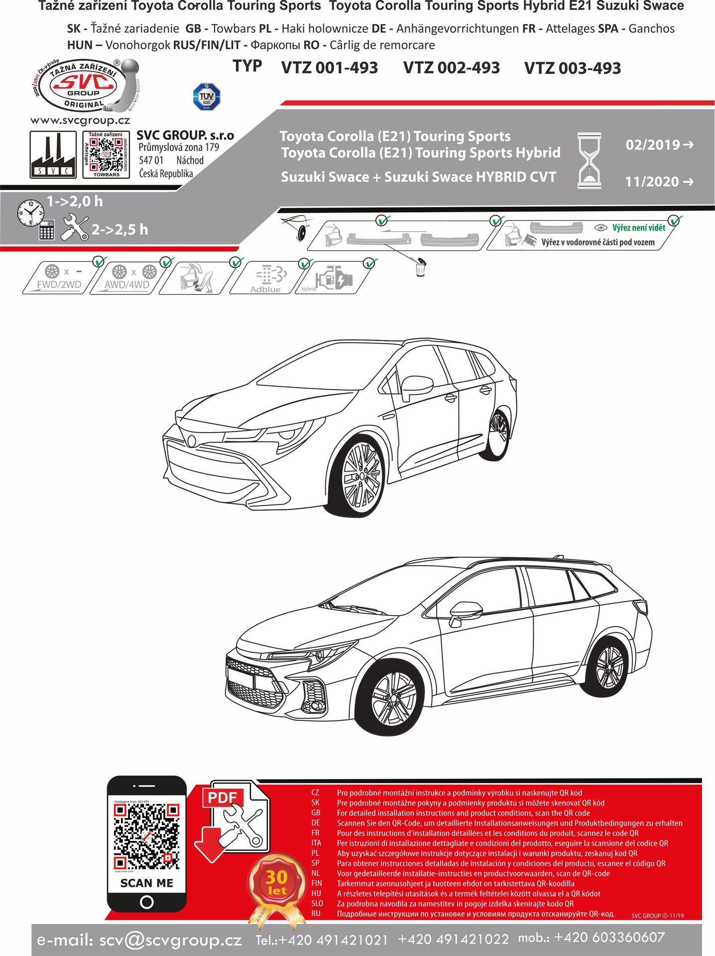 Tažný zařízení SVC pro Toyota Corolla Combi značené také jako Toyota Corolla (E21) Touring Sports, Toyota Corolla (E21) Touring Sports Hybrid, Suzuki Swace Combi tažné zařízení SVC je k použití i na vozech s nožním otevírání vozu