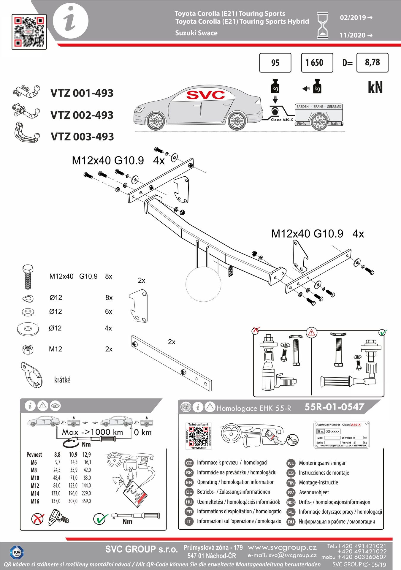 Výrobek je vyráběný dle požadavku vozu a Homologovaný pro prodej a provoz ve všech státech EU dle příslušných norem EHK-55R, podle zastaralé normy e94/20 zrušené již v roce 2016, která nesplňuje, dlouhodobě podmínky pro provoz nevyrábíme. Chráněný vzor SVC - bajonet SVMAT-2 je možné zaměnit za dvou šroubové provedení SVC, bez výměny tažného zařízení.