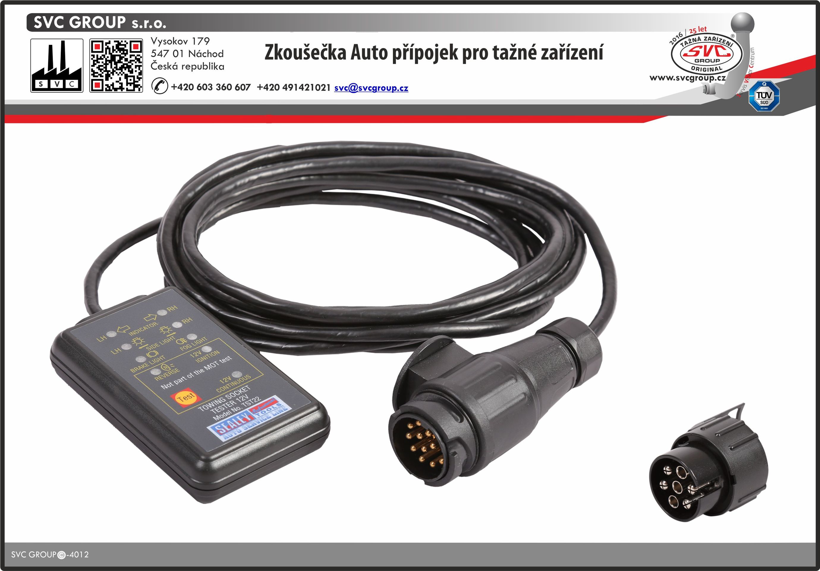 - Dodáváno se s kabelem 4.9mtr, tak aby obsluha mohla kontrolovat elektro přípojku tažného zařízení z vozu.